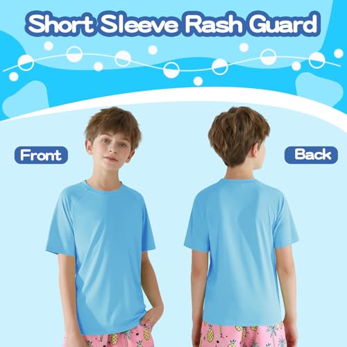 • Superior Fabric: Our boys swim shirt short sleeve are made of 4-way stretch fabric, 88% polyester and 12% spandex, breathable, lightweight and stretchy, provide excellent ventilation and comfort during physical activities, easy to clean, and resistant to wear. Please check the size details, recommend to order one size up for your growing kids.