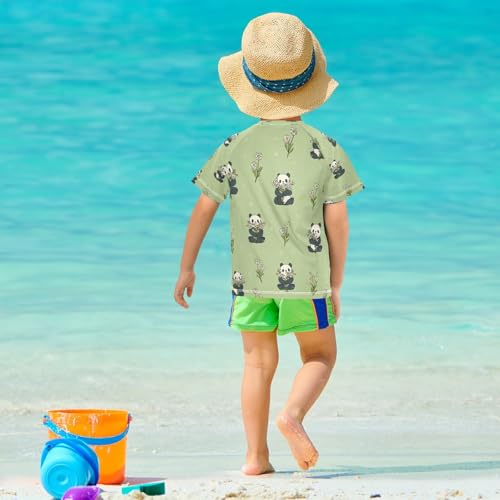 Boys Short Sleeve T-Shirts Panda Bear Daisy Rashguard Kids Swim Shirts Sun UPF 50+ 2