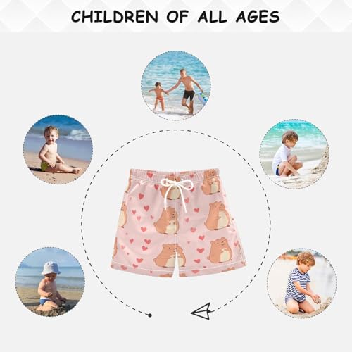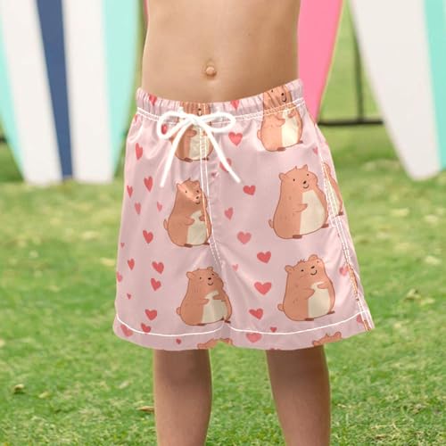 Pigsaly Boys Swim Trunks Lovely Capybara Hearts Pink Boys Board Shorts Swimsuit Swimwear Summer Bathing Suit S 4