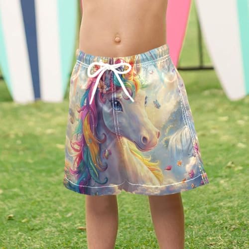 Pigsaly Boys Swim Trunks Unicorns Rainbow Water Boys Board Shorts Swimsuit Swimwear Summer Bathing Suit 2T 4