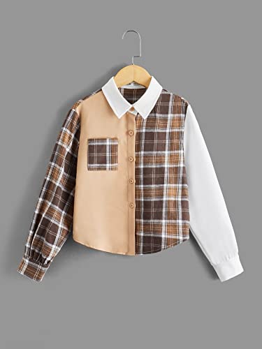 WDIRARA Girl's Plaid Color Block Button Down Shirt Long Sleeve Pocket Blouse Preppy Top 5