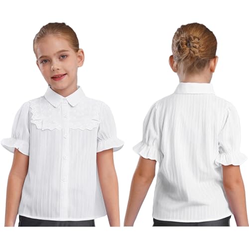 More information about Kids Girls Lace Trim Ruffle Blouses Puff Sleeve Button Down Shirts Princess Party School Uniform Tops Daily Wear