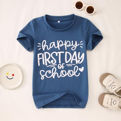 • 【Package】1*Kid Boys Girls happy first day of school short sleeve shirts, girls boys back to school summer tops, toddler girls happy first day of school graphic shirts, back to school tee shirts. A wonderful memory of the first day of school. Pairs perfectly with jeans, skirts, or shorts for a stylish first-day look. Machine Wash or Hand Wash. Do not bleach.