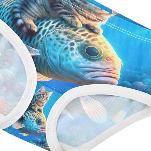 Toddler Girl Briefs, Cute Cat Fish Blue Cotton Underwear Girls, 2–8 Years 4