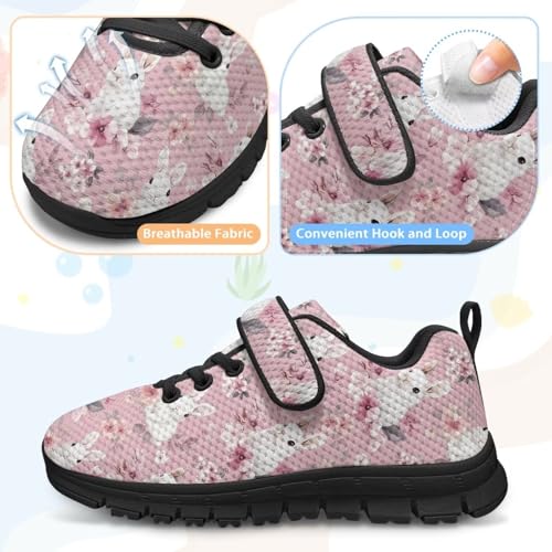 Easter Rabbit Flowers Pattern Little Kid Tennis Shoes Slip On Boys Girls Sneakers Casual Running Shoes Woven Breathable with Soft Soled Sports Hook-Loop Outdoor Shoes 5