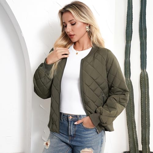 Women's Bomber Jacket - Fashion Quilted Casual Bomber Jakcets Lightweight Zip up Outerwear Jacket with Pockets 1