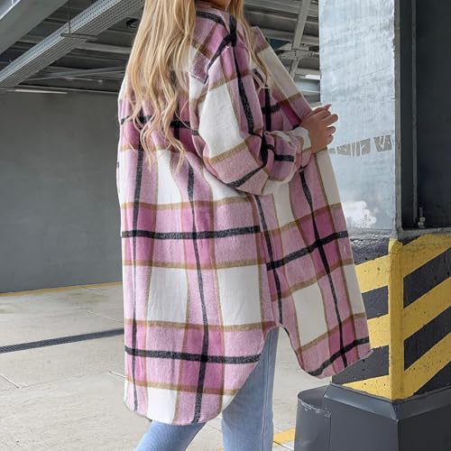 • womens flannel shirt jacket button down long sleeve oversized shacket coat loose casual blouse tops with pockets womens casual flannel plaid shacket jackets brushed button down long sleeve shirts coats with pockets oversized tops womens casual flannel wool blend plaid lapel button down shirt long sleeve shacket jacket with pockets womens casual flannel plaid shirts button down pocketed plaid shacket shirt jackets trendy womens flannel shacket jacket casual plaid wool
