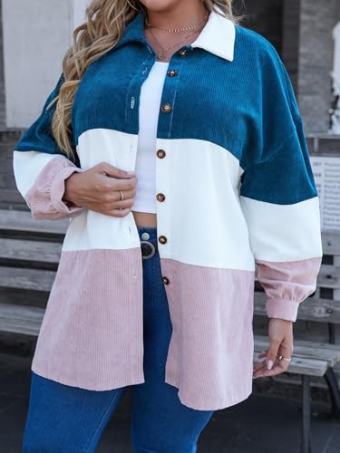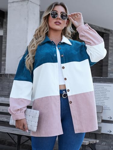 Corduroy Shirt for Women Plus Size Striped Button Down Blouse, Casual Color Block Long Shacket for Stylish Outfits 1