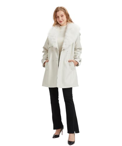 More information about Women Faux Leather Trench Long Coat wiht Fur Collar,Mid Length Double-Breasted Overcoat Jacket Fur Lined