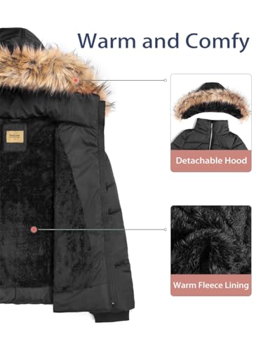 BodiLove Women's Puffer Jacket with Removable Faux Fur Hood and Zipper Black L 4