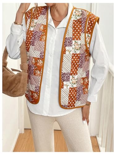 MakeMeChic Women's Floral Open Front Puffer Vest Jacket Sleeveless Lightweight Quilted Jackets 6