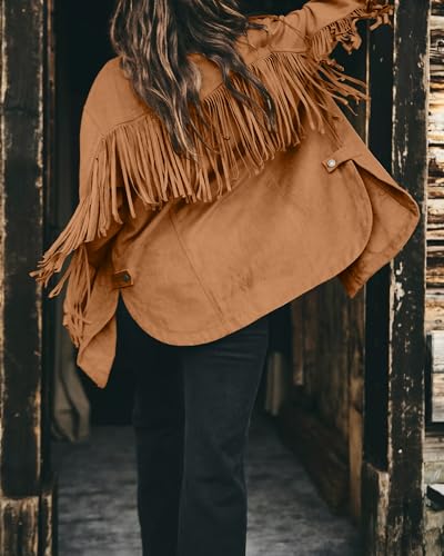 Gacaky Women's Oversized Faux Suede Fringe Jacket Vintage Western Cowgirl Tassel Jackets Country Concert Outfits 6
