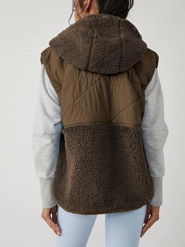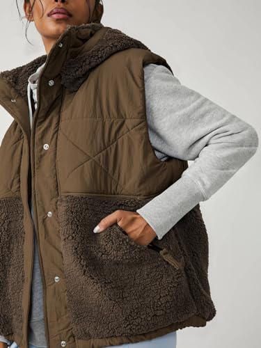 Imily Bela Womens Winter Sherpa Fleece Vest Stand Collar Button Down Sleeveless Jacket Casual Hooded Coat Outerwear 5