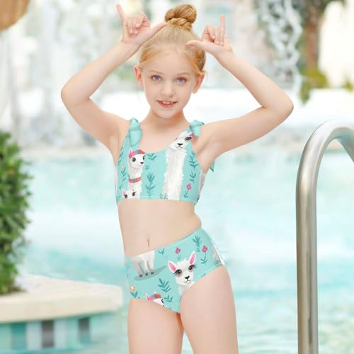 Girls' Bikini Set, White Llamas Teal Kids Swimsuit 2 Pcs Beach Bathing Suit 6