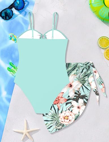 • 🍹A Thoughtful Gift She’ll Adore: This cyan girls one-piece swimsuit with a matching floral sarong makes a fantastic gift for birthdays, holidays, or special occasions. Give her a girls bathing suit that combines comfort, style, and confidence for the ultimate summer surprise!