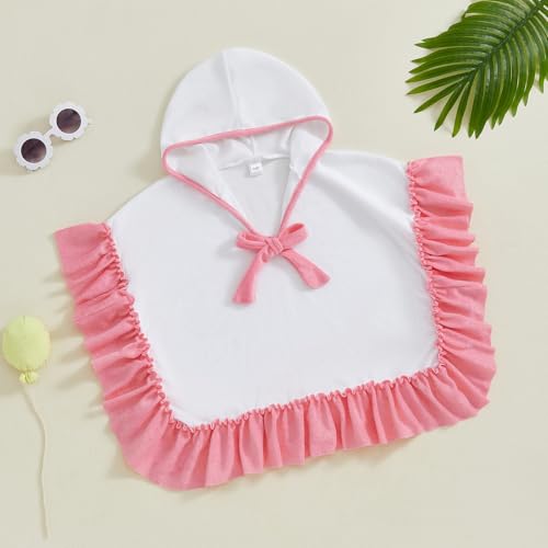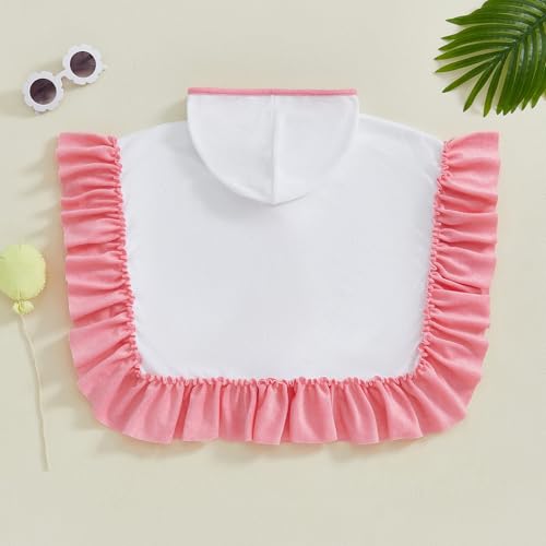 • [Feature]- Toddler girl Terry swim cover up, baby girl swimwear cover up, swimsuit cover up baby girls, Bathing suit coverups for girls, short sleeve, hooded, tiered, hem, pink and white color blocked, ruffle swimsuit cover up girls, toddler girl bathing suit cover up kimono beachwear, girl short sleeve cover up, little girls terry cloth swim beach cover up