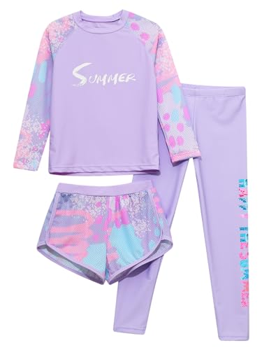 3Pcs Girls UPF 50+ Swimsuit Swimwear Anti-UV Rash Guard Set Rash Shirts and Swim Shorts Pants Set 3