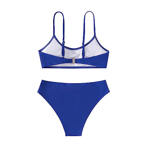HOT ! Girl's 2 Piece High Waisted Spaghetti Strap Cute Swimsuit Bathing Suit Solid Bikini Sets Swimwear for (Blue, 14 Years)