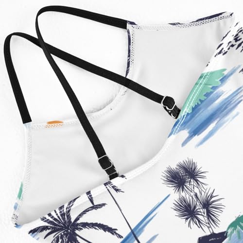 Girls One Piece Swimsuits Summer Island Pattern with Palm Trees Sport Halter Swimwear Beach Bathing Suit, 3T 3