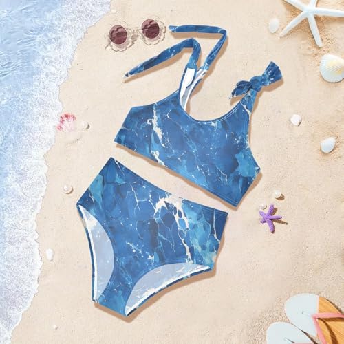 KLL Dark Blue Marble Girls' Two Piece Bikini Sets Beach Swimsuits Swimming Suits Adjustable Strap 5
