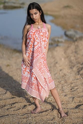 More information about Hand block Print Cotton Sarong Wrap Scarf Shawl Beach Cover Up Boho Boho Block Print Sarong – Handmade Cotton Beach Wrap