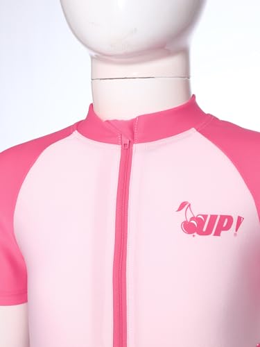 Yartina Girls 2-Piece Sun Protection Swimsuit Short Sleeve Zip Rash Guard Contrast Color Dress with Shorts 7
