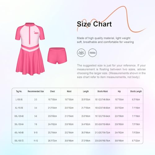 Yartina Girls 2-Piece Sun Protection Swimsuit Short Sleeve Zip Rash Guard Contrast Color Dress with Shorts 4