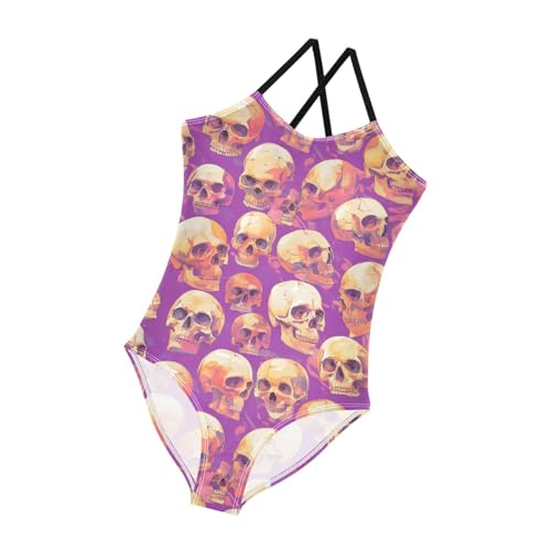 KLL Skulls Seamless Girls 1 Piece Swimsuit Summer Swimwear Adjustable Strap Quick Dry 1