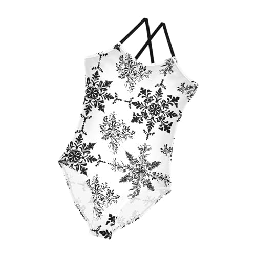 KLL Snowflake Black and White Background Toddler Girls 1-Piece Swimsuits Beach Swimming Suits Adjustable Strap Quick Dry 6