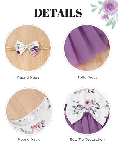 • Cute Designs:Baby girl dresses, floral ruffle long sleeve, crew neck, layers of tulle skirts, bow tie at the wasit and matching headband give the dress more design, make this tutu dress look trendy and beautiful