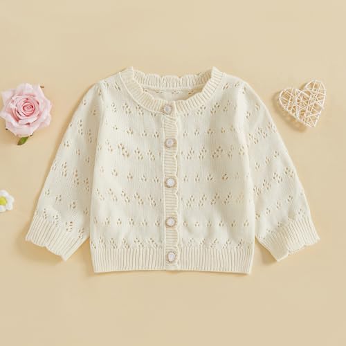 Newborn Baby Girl Knit Sweater Cardigan Solid Cutout Button Down Sweatshirt Top Jacket Outfit Infant Fall Clothes 6
