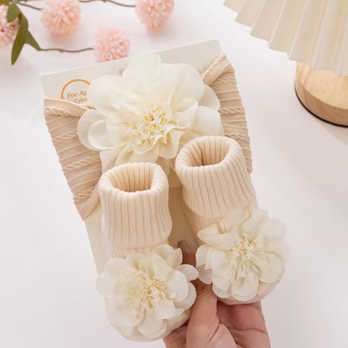 Sock,Baby Flower Headband & Socks Set for Baby 0-1Year Soft Elastic Hairband Nonslip Floor Socks Baby Accessories 1