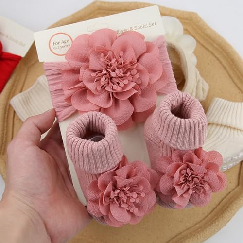 Sock,Baby Flower Headband & Socks Set for Baby 0-1Year Soft Elastic Hairband Nonslip Floor Socks Baby Accessories 4