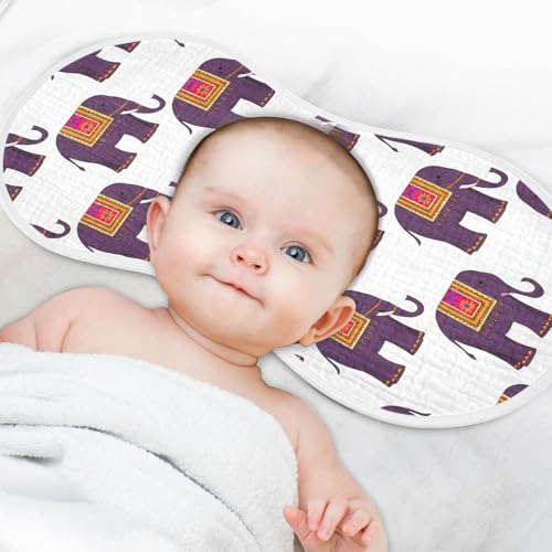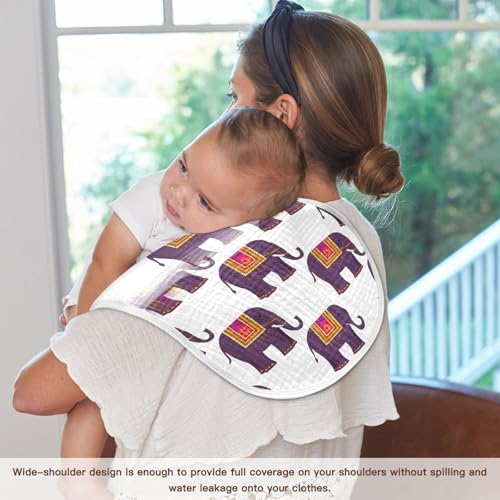 Muslin Baby Burp Cloths, Colorful Blanket Elephants Cotton Soft Burp Cloths for Newborns​​, Extra Absorbent Burp Cloths 2-Pack​​, 22 x 11 Inch 2