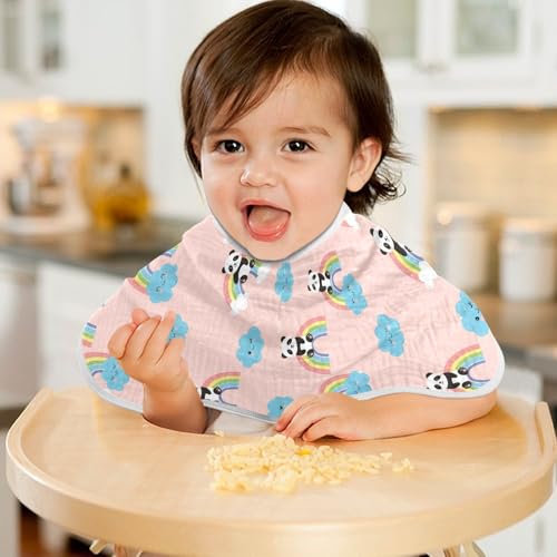 J JOYSAY Pandas Cloud Rainbow Pink Baby Burp Cloths for Boys Girls Large 22''x11'' Cotton 4 Layer Baby Spit Up for Drool Newborn one sizex2 5