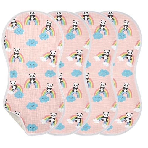 J JOYSAY Pandas Cloud Rainbow Pink Baby Burp Cloths for Boys Girls Large 22''x11'' Cotton 4 Layer Baby Spit Up for Drool Newborn one sizex2 4