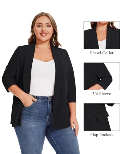 • 【Feature】 3/4 Sleeve Plus Size Blazer, Open front blazer suit jackets with pockets, Shawl collar, Work office suit jackets, Solid color, Front lined, Plus size blazers for women work casual