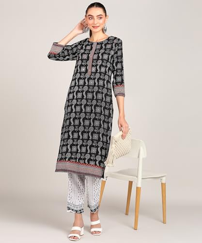 HOT ! Exclusive Handmade BLACK Rayon Kurti Set - Includes Kurta, Pant, and Dupatta