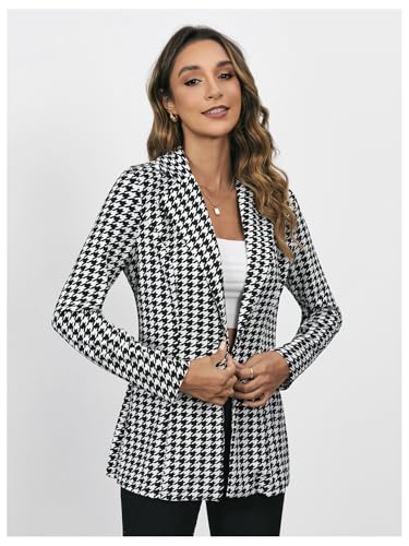 • Features: button front, long sleeve, lapel collar, houndstooth office suit blazers for women