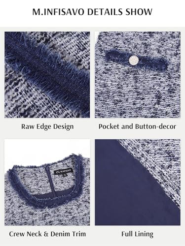 M.Infisavo Women’s Tweed Jacket Dress with Pockets Short Sleeve A Line Mini Elegant Bodycon Vintage Casual Crew Neck Dresses 4