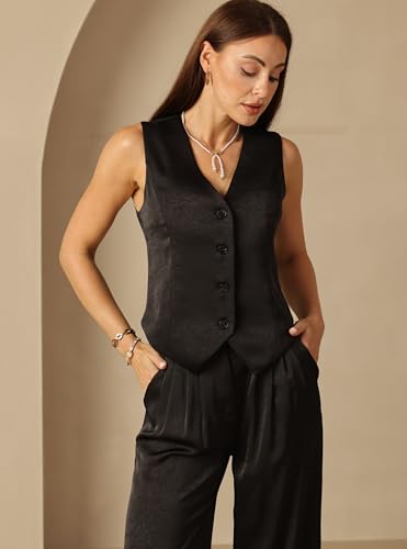 More information about Women's 2 Piece Sets Textured Silky Outfits Vest Waistcoat Dress Casual Wide Leg Pant Suits