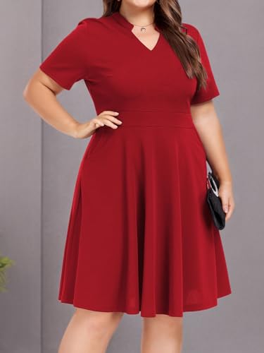 Mokayee Womens Plus Size Dresses Summer V Neck Casual Semi Formal Knee Length Church Wedding Guest Dresses with Pocktes 5