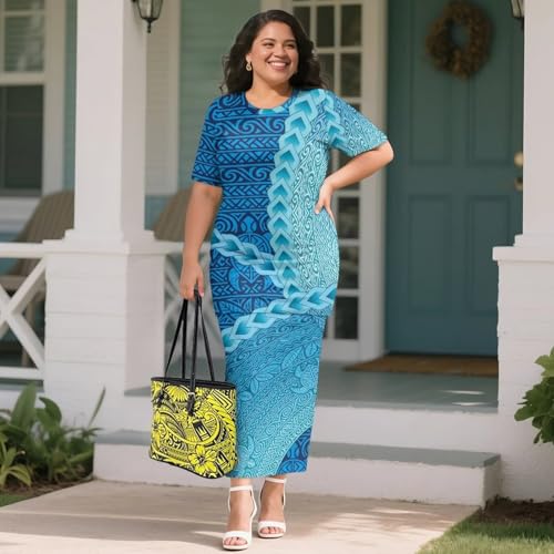 • Features: Polynesian traditional tribal floral 3D print, short sleeve top, long maxi skirt, plus size, puletasi set, samoan clothing, slim fit, casual fashionelegant style.