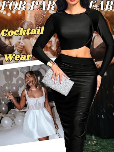 Kaei&Shi Two Piece Skirt Set for Women,Long Sleeve Top Maxi Skirts,Date Night Outfits Going Out Cocktail Party 6