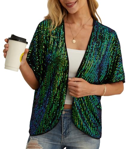 • Features:Sparkling sequin cardigan, half sleeved cardigan, Bling Glitter shimmer, short, front open, loose fitting, lightweight and elastic, it is the best choice for leisure and entertainment