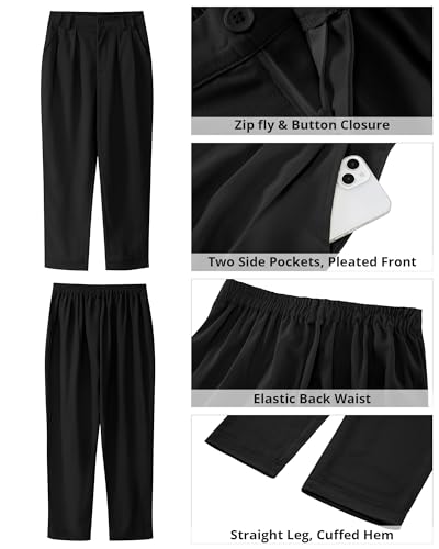 GRAPENT Capri Dress Pants for Women High Waisted Pleated Lightweight Straight Leg Elastic Wasit Crop Trousers Work Pants 6