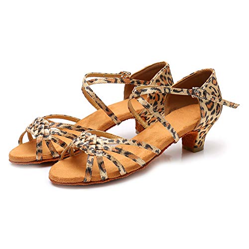 YKXLM Girls Latin Dance Shoes Kids Low Heels Tango Salsa Ballroom Practice Dance Shoes, 1208,Leopard, 4.5 M Little Kid 1