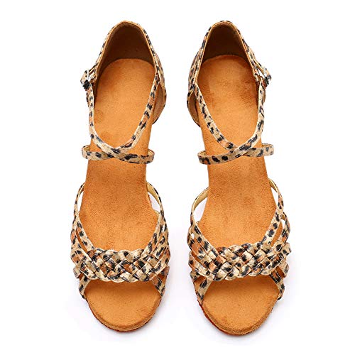 YKXLM Girls Latin Dance Shoes Kids Low Heels Tango Salsa Ballroom Practice Dance Shoes, 1208,Leopard, 4.5 M Little Kid 7