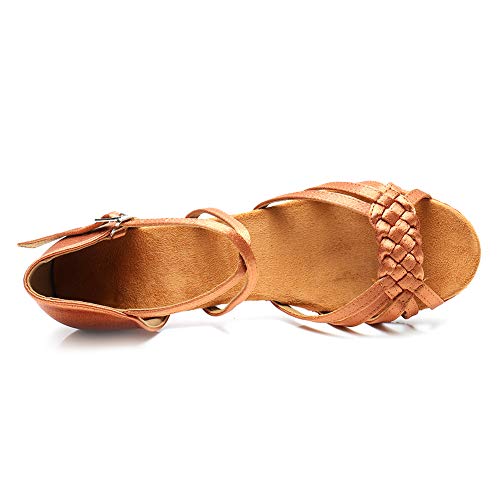YKXLM Girls Latin Dance Shoes Kids Low Heels Tango Salsa Ballroom Practice Dance Shoes, 1208,Brown, 6.5 M Little Kid 5