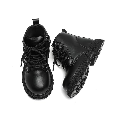 Komfyea Autumn Leather Combat Zipper Lace Up Boots (Toddler/Little Kids) Children Winter Ankle Boots 1
